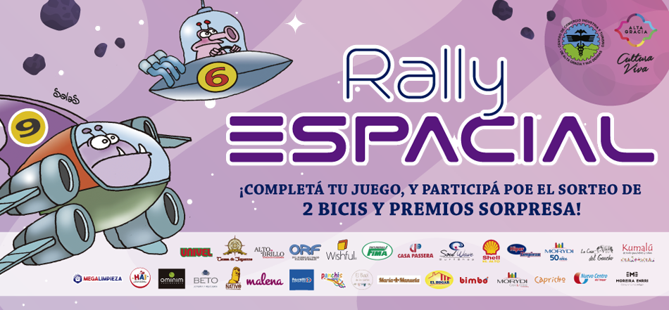 Con motivo del “Día del Niño”, el Centro de Comercio Industria y Turismo de Alta Gracia y sus Sierras junto al reconocido artista local Oscar Salas, dan comienzo al “Rally Espacial”: los niños de nuestra Ciudad podrán retirar en lo comercios adheridos a la acción un juego para compartir con amigos; y buscando la totalidad de los personajes, participar por el sorteo de dos bicicletas y premios sorpresas.